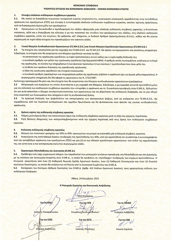Υπεγράφη η Κοινωνική Συμφωνία για την Ενίσχυση των Συλλογικών Συμβάσεων Εργασίας μεταξύ της Κυβέρνησης και Εθνικών Κοινωνικών Εταίρων.