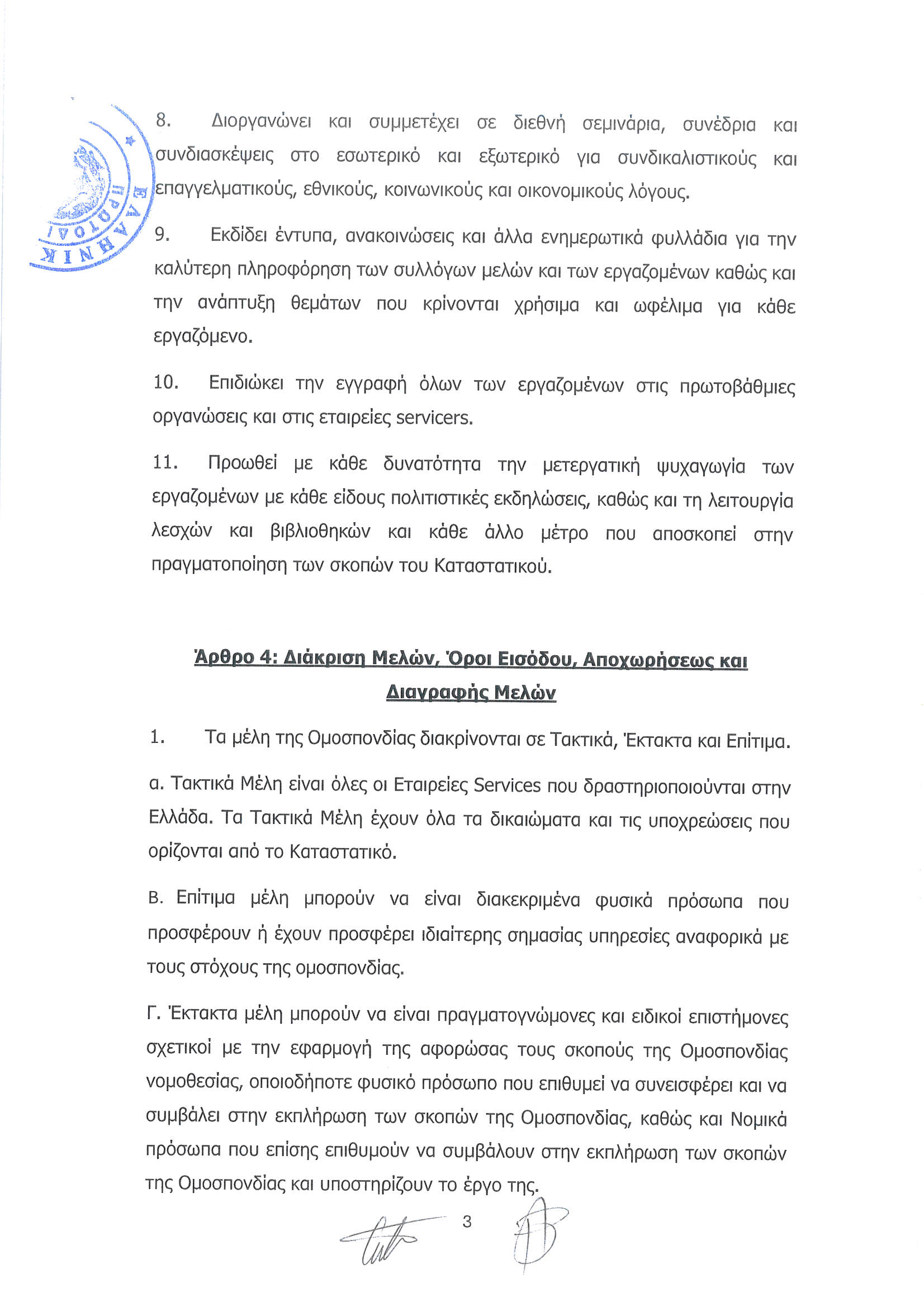 ΕΓΓΡΑΦΑ Καταστατικό Ομοσπονδίας OOSE 13 December, 2024 0 13 Share FacebookTwitterWhatsAppEmail Πρέπει να διαβάσετε Δώρο Χριστουγέννων 5 December, 2025 Η κακοκαιρία και τα δικαιώματα του εργαζόμενου 4 December, 2025 Επιχειρήσεις που εφαρμόζουν σύστημα πενθήμερης εβδομαδιαίας εργασίας: Πότε οι εργαζόμενοι μπορούν να εργασθούν νομίμως και την έκτη ημέρα της εβδομάδας; 15 October, 2025 Σημαντική αύξηση των καταγγελιών βίας και παρενόχλησης στην εργασία 3 June, 2025 Μπορείτε να κατεβάσετε το καταστατικό σε αρχείο pdf πατώντας εδώ. Share FacebookTwitterWhatsAppEmail Previous articleΣτην τελική ευθεία για την ίδρυση της πρώτης Ομοσπονδίας Servicers στην ΕλλάδαNext articleΆδεια ειδικού σκοπού: Να μην χρησιμοποιείται η άδεια άνευ αποδοχών Τελευταία νέα Την Τρίτη 16 Δεκεμβρίου 2025 η πρώτη Ομοσπονδία Οργανώσεων Servicers Ελλάδος έγινε πραγματικότητα 18 December, 2025 Δώρο Χριστουγέννων 5 December, 2025 Η κακοκαιρία και τα δικαιώματα του εργαζόμενου 4 December, 2025 Την Τρίτη 16 Δεκεμβρίου 2025 η πρώτη Ομοσπονδία Οργανώσεων Servicers Ελλάδος γίνεται πραγματικότητα 3 December, 2025 Εθνική κοινωνική συμφωνία για την επιστροφή των ΣΣΕ 26 November, 2025
